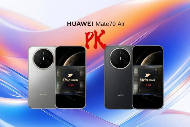其中有使用麒麟9020A芯片的Mate 70 Air,还有使用麒麟9020A芯片的Mate 70 Air,价格分别是4199元和4699元起,两种芯片不同,但其它配置基本一样,相差是500元。
